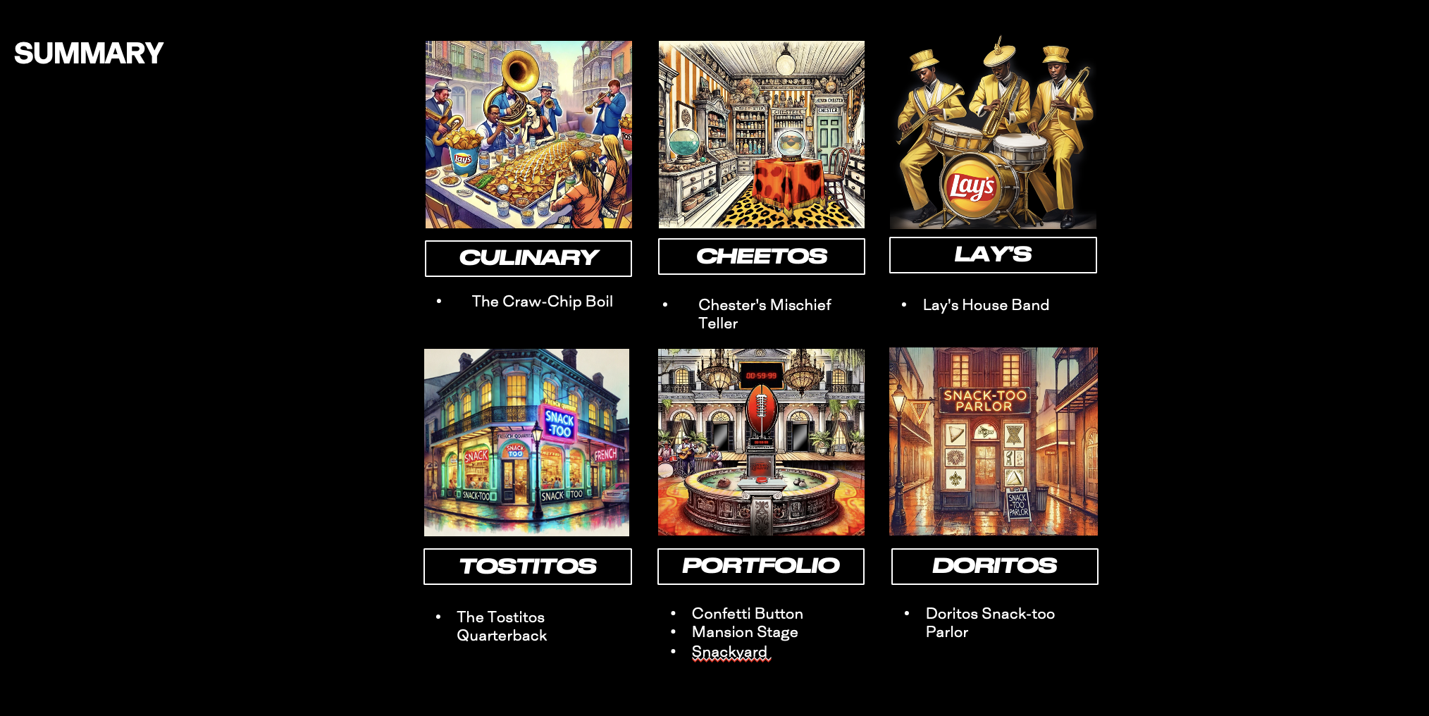 The "Chips & Sips" activation featured a variety of engaging activities designed for public participation. Highlights included the "Lay's Crawchip" station, offering Creole-inspired dishes crafted by local chefs, and the "Tostitos Armchair Quarterback Challenge," where attendees tested their football trivia knowledge. Visitors could also enjoy the "Doritos Snacktoo Parlor," receiving real Doritos and football-themed micro-tattoos on site. The "Pepsi Taste Challenge" invited participants to test their flavor preferences, while the immersive "Cheetos Fortune Teller" provided live readings from Chester's spirit.