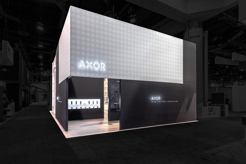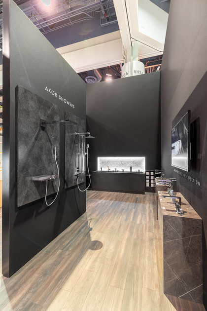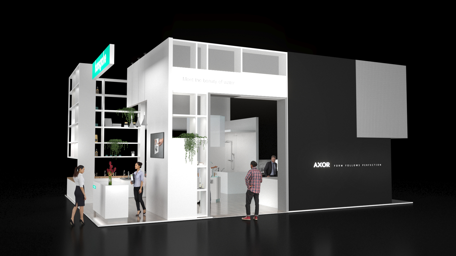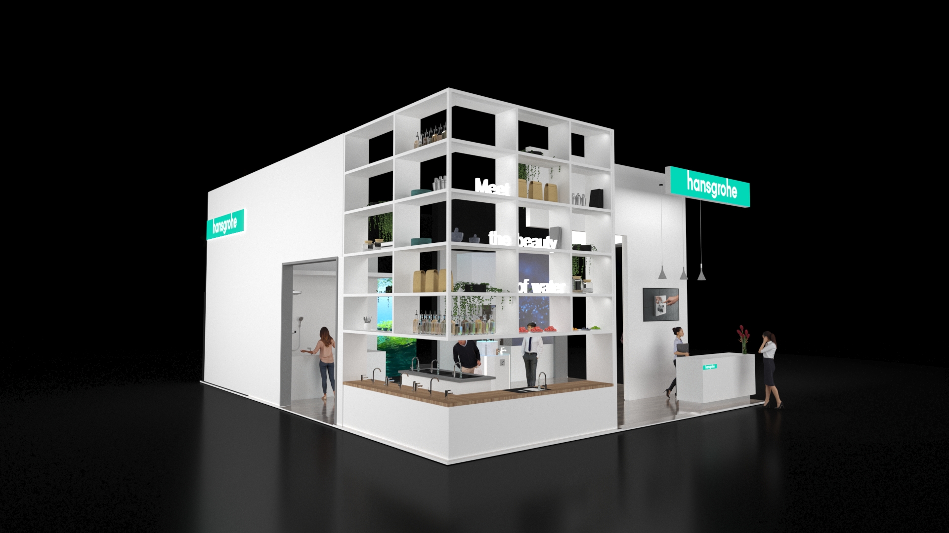 With a more experiential and retail feeling the objective of this project was to design an exhibit that reflects the high quality, elegance and sleek design of the “Hansgrohe” and “Axor” brands . The architecture embraces both brands equally so that the individual look and feel of each, compliments the other.