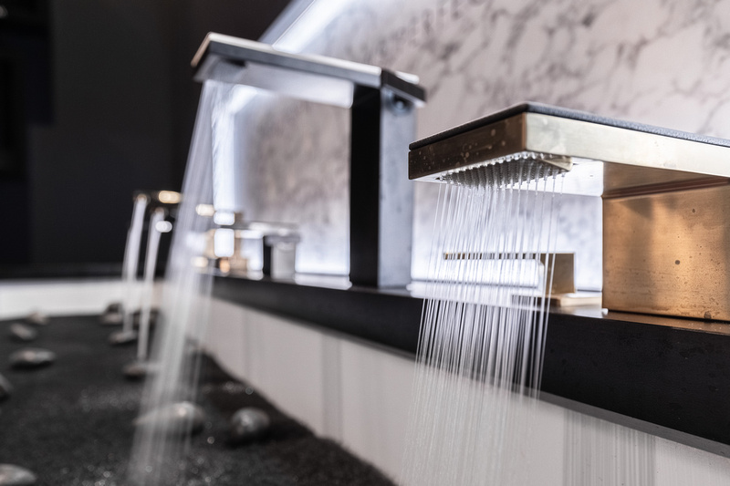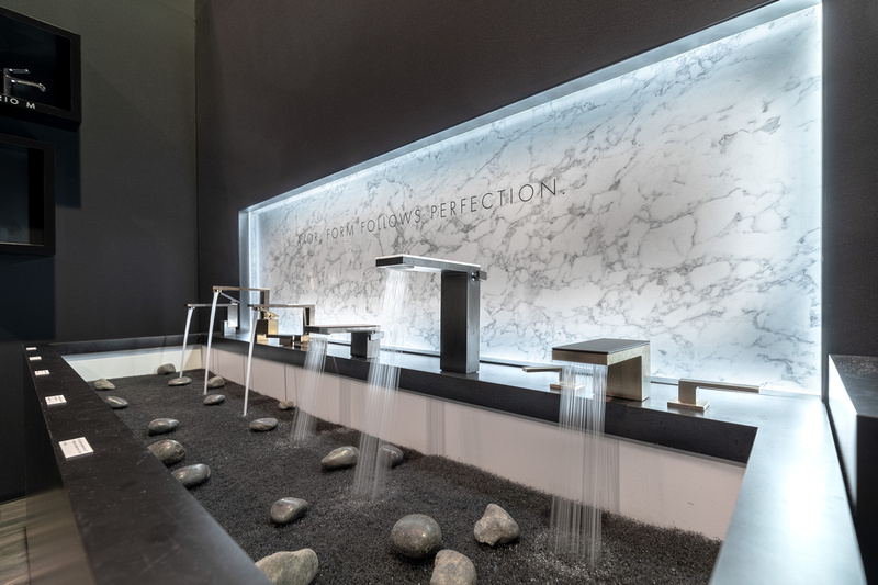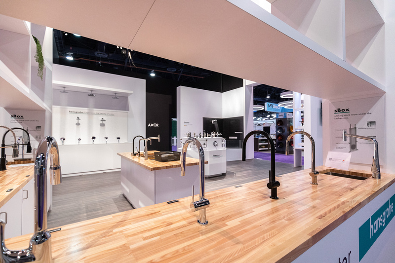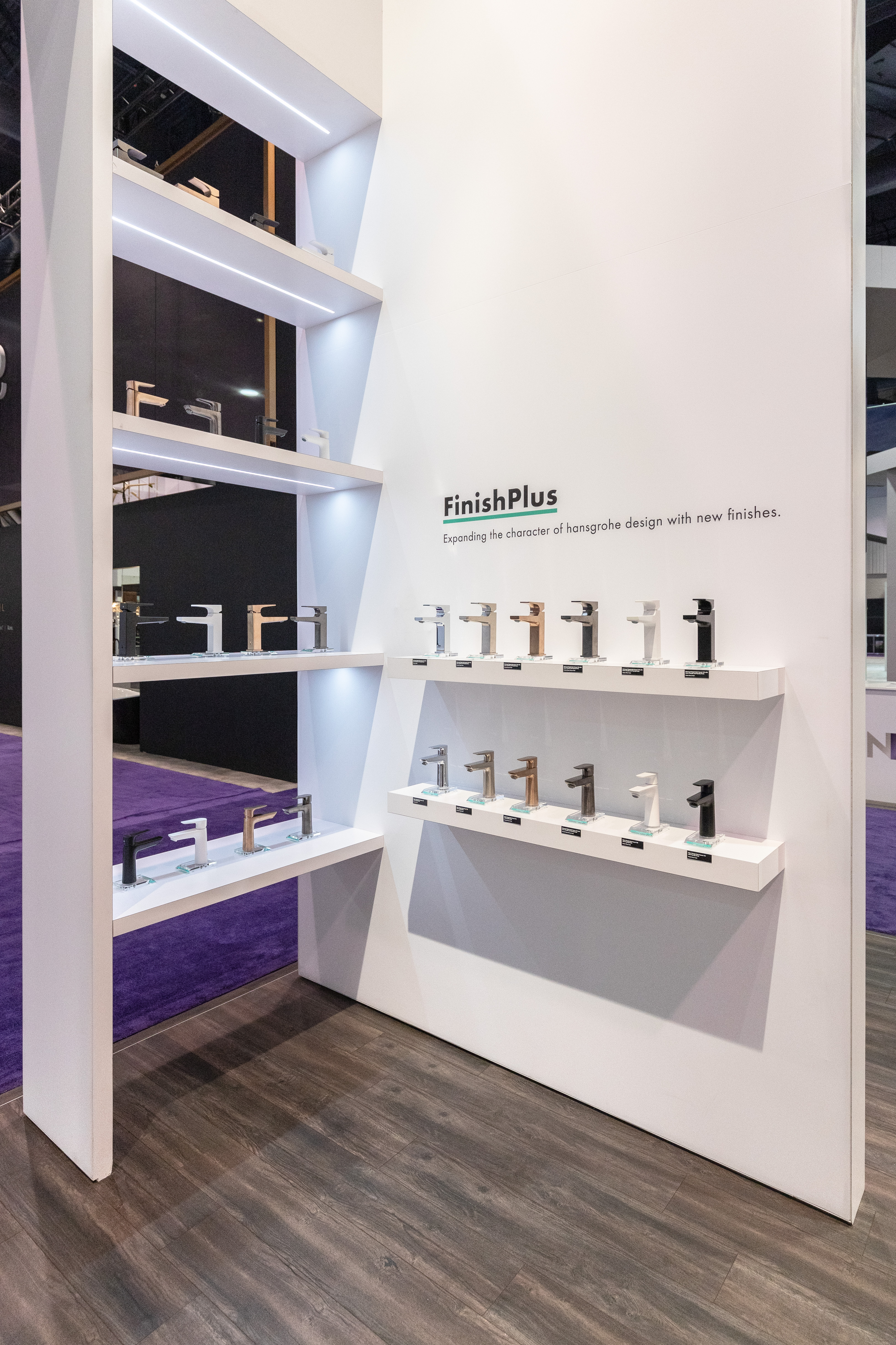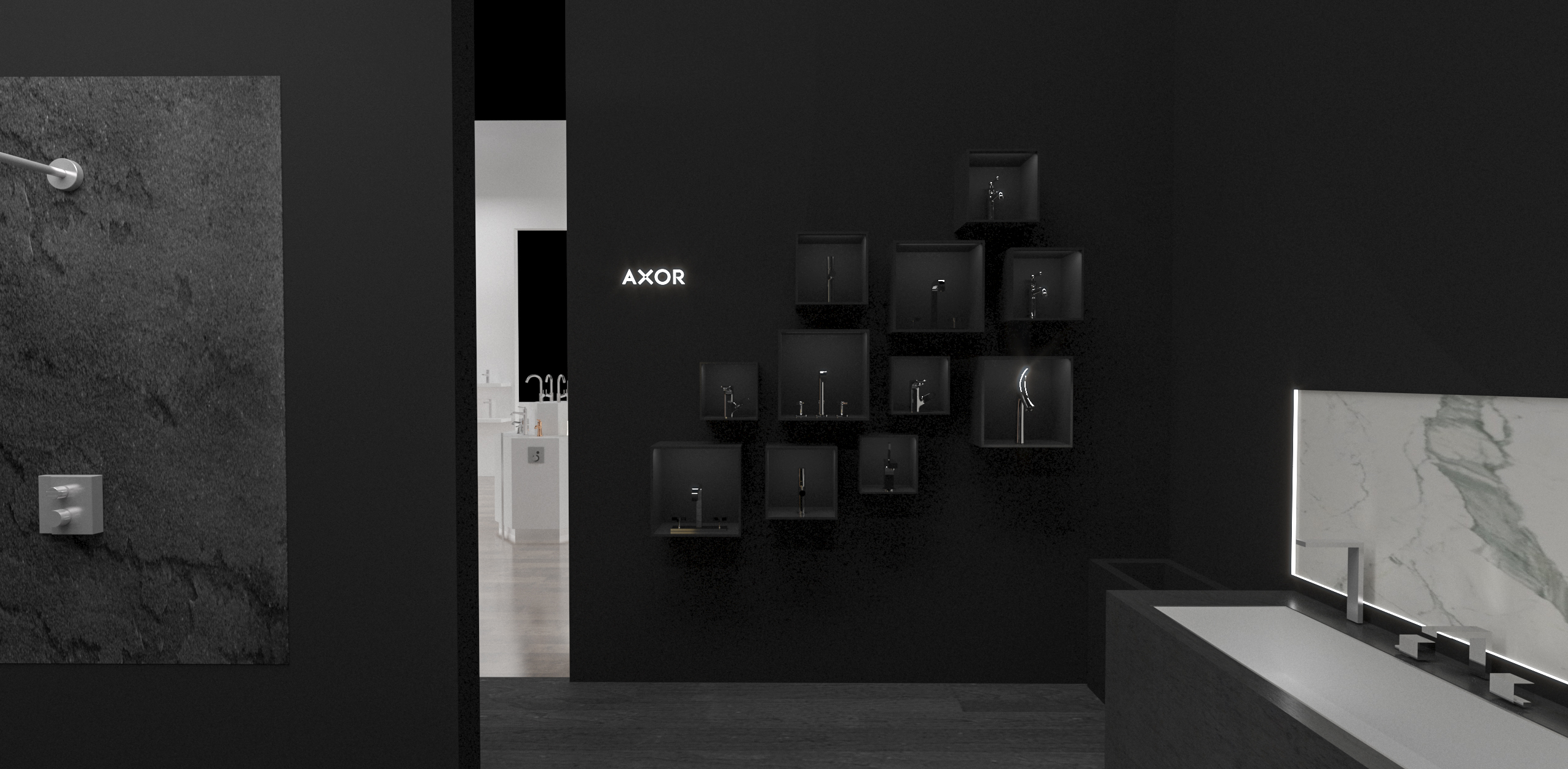 With a more experiential and retail feeling the objective of this project was to design an exhibit that reflects the high quality, elegance and sleek design of the “Hansgrohe” and “Axor” brands . The architecture embraces both brands equally so that the individual look and feel of each, compliments the other.