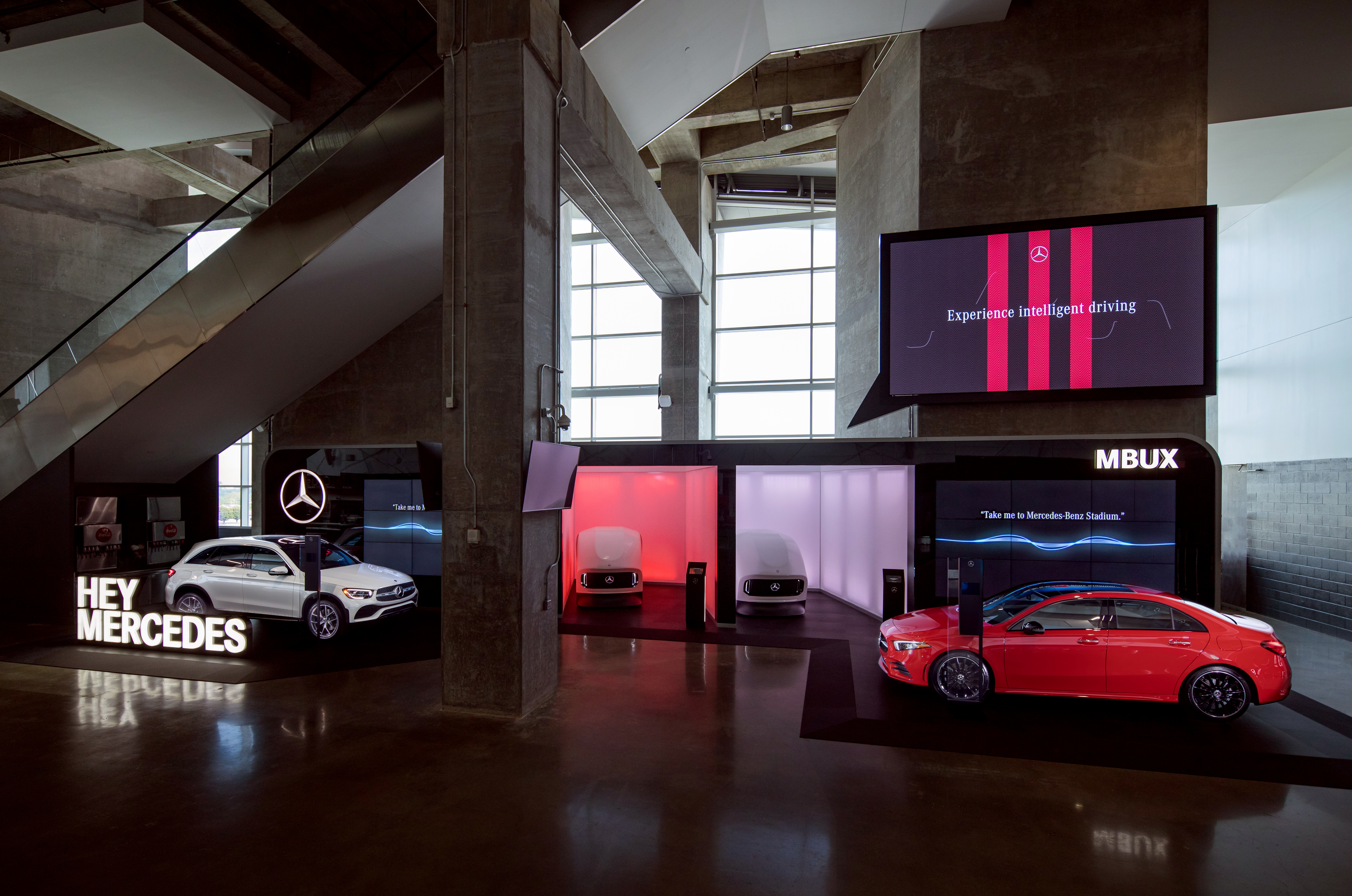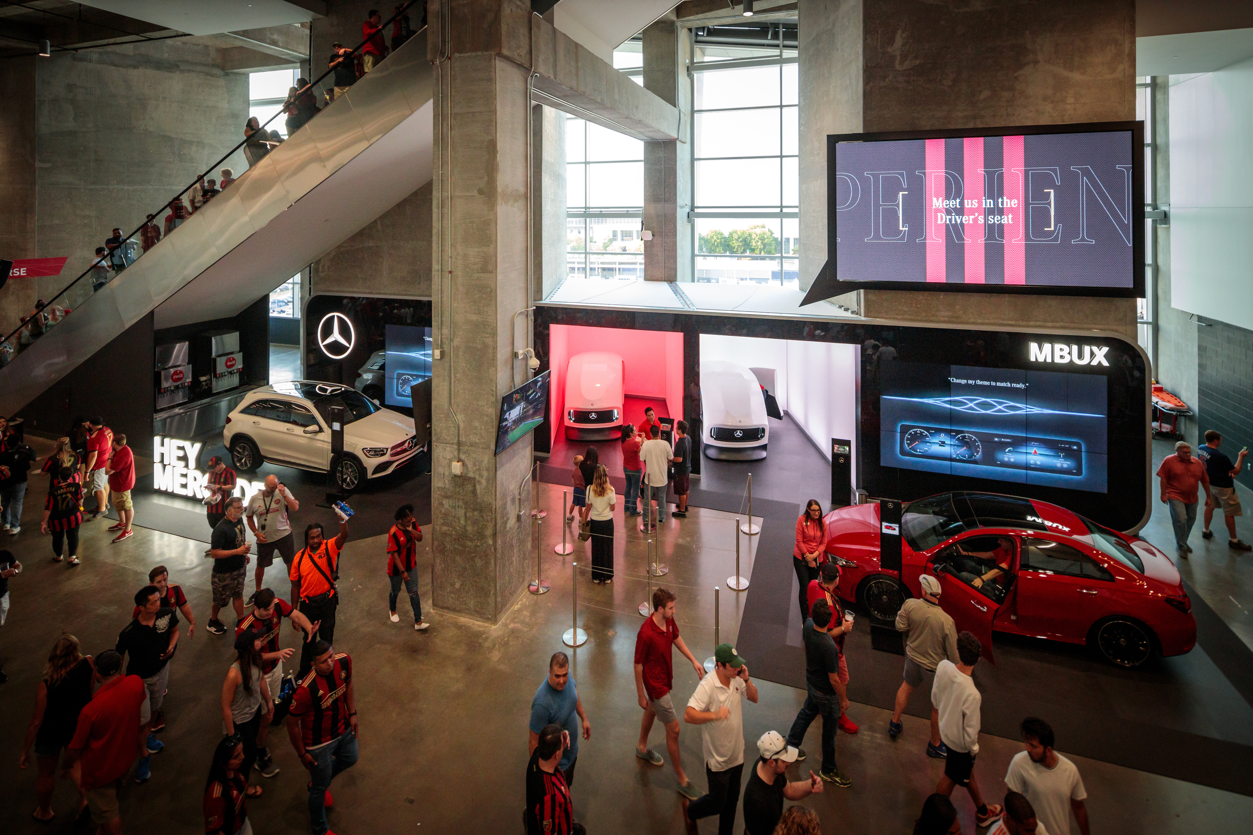 The activations allow visitors to experience MBUX technology in a custom pod design the allows voice command options and the opportunity to an AR interaction with Atlanta Falcons and Atlanta United top players.