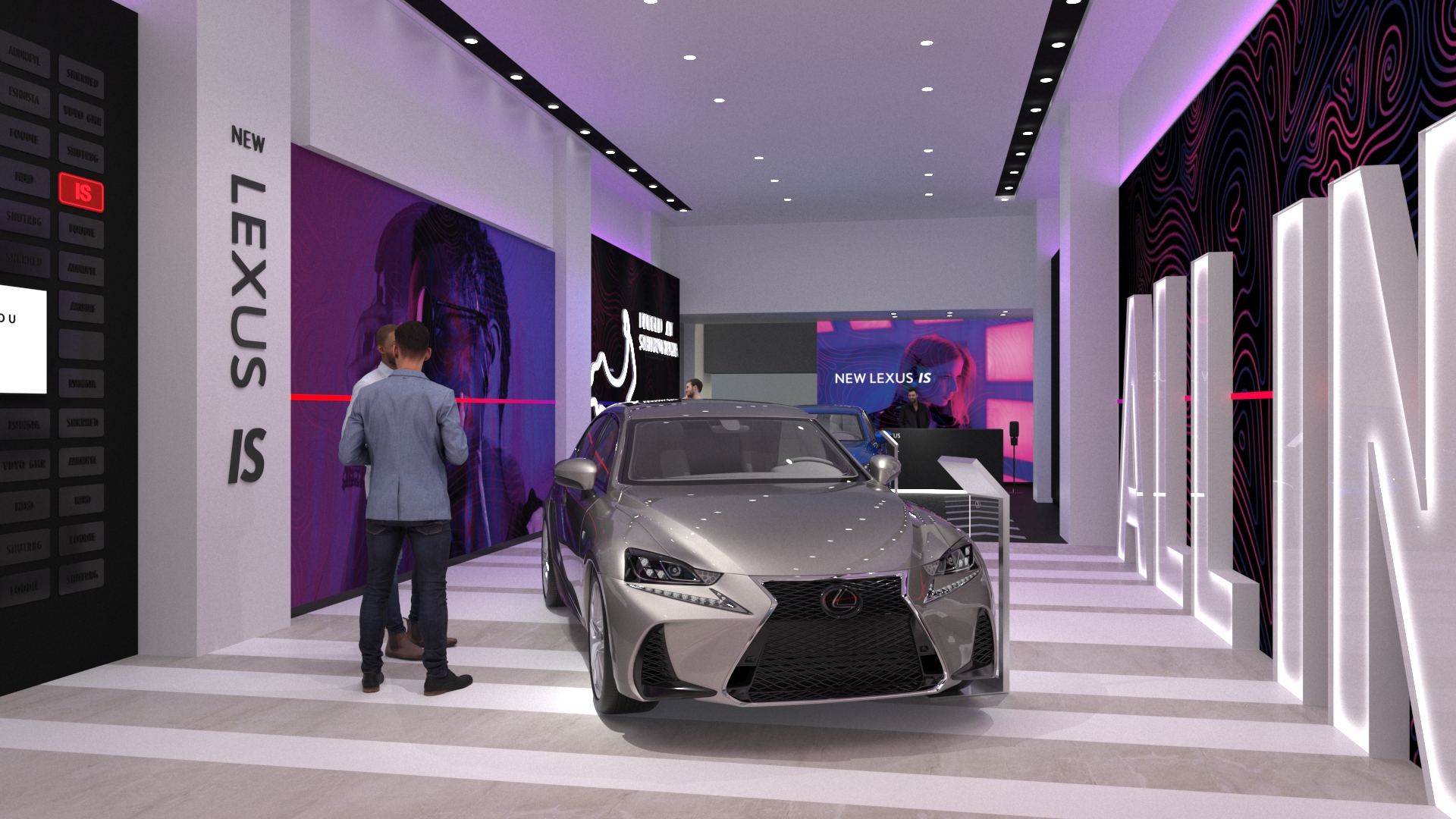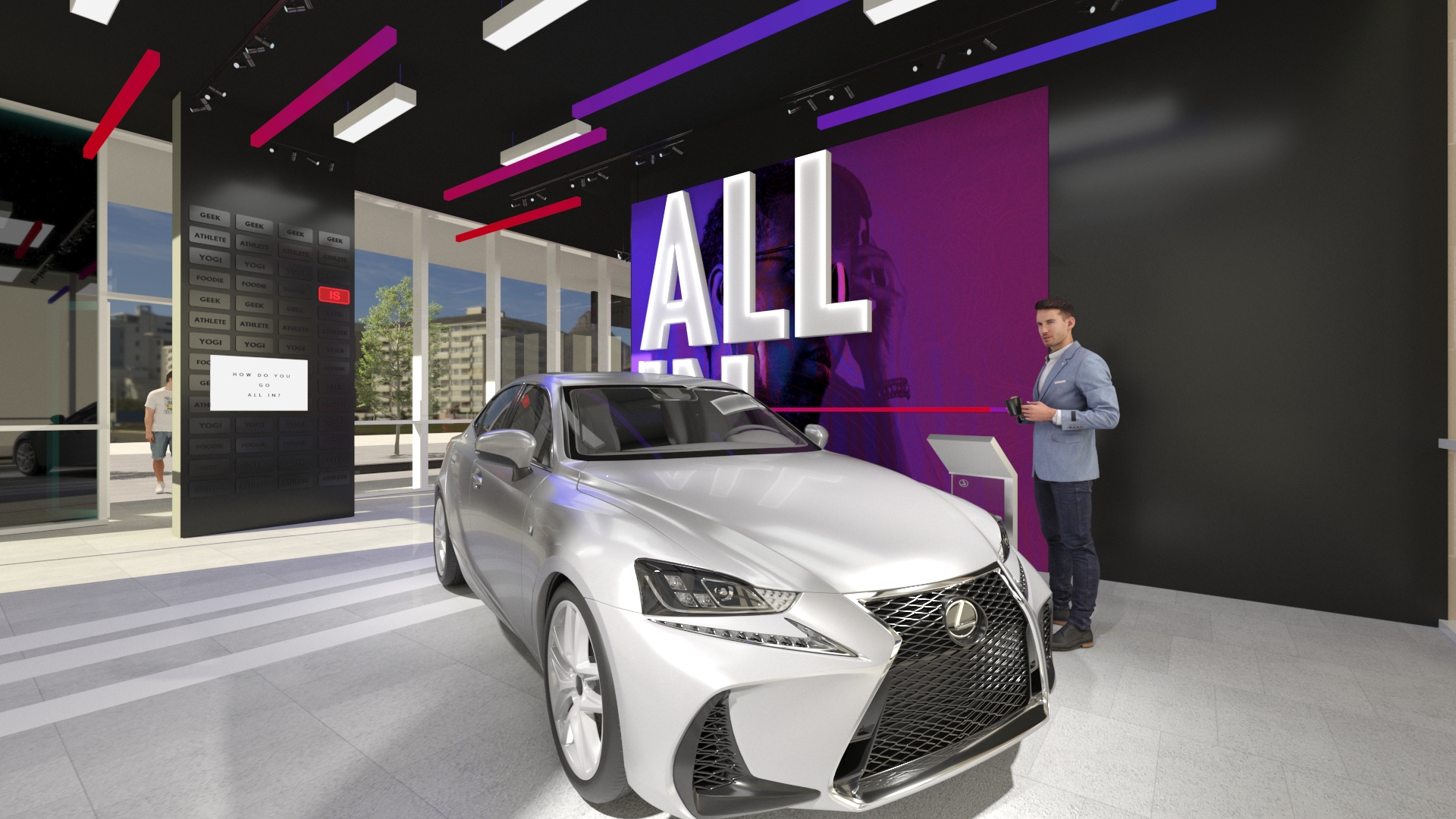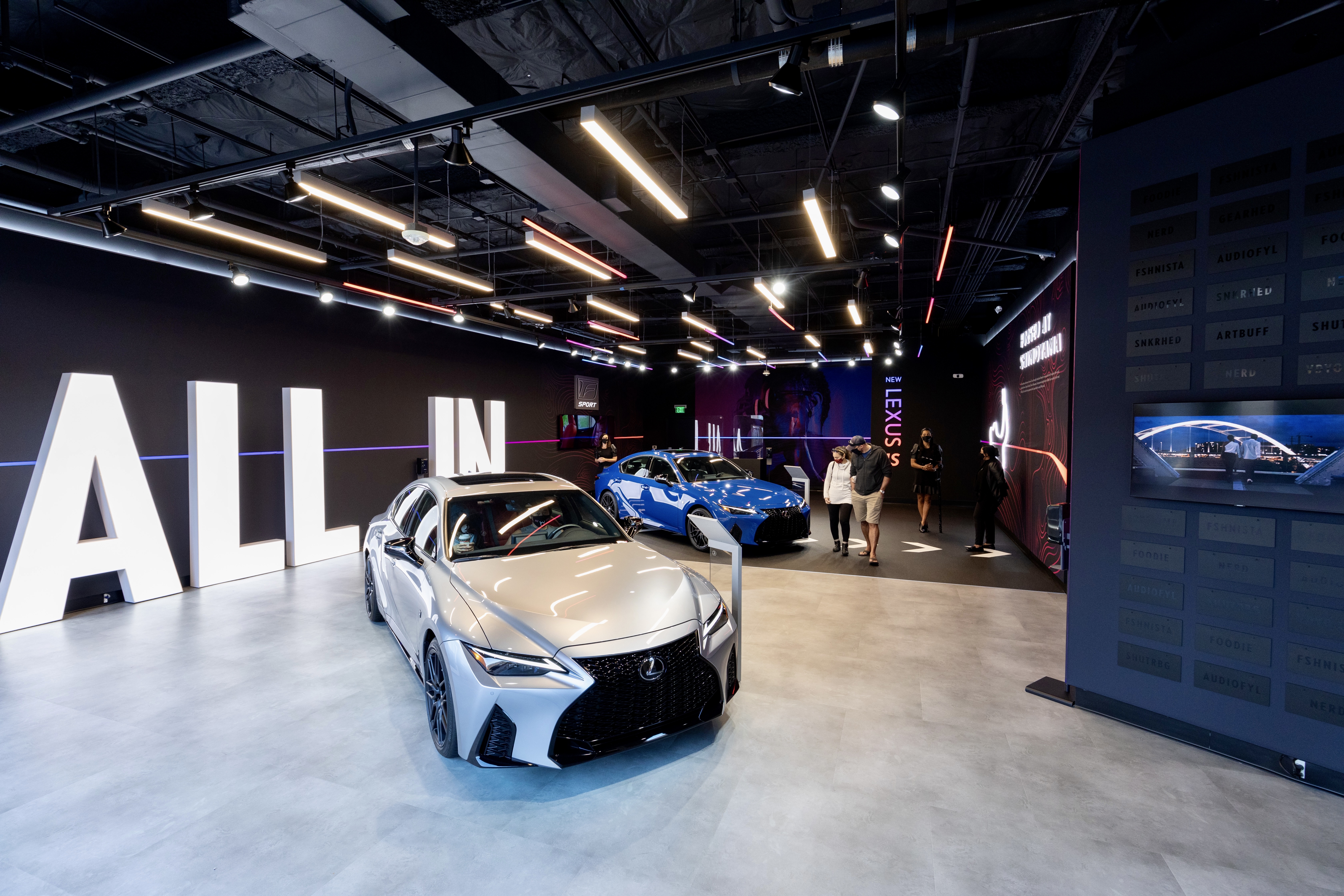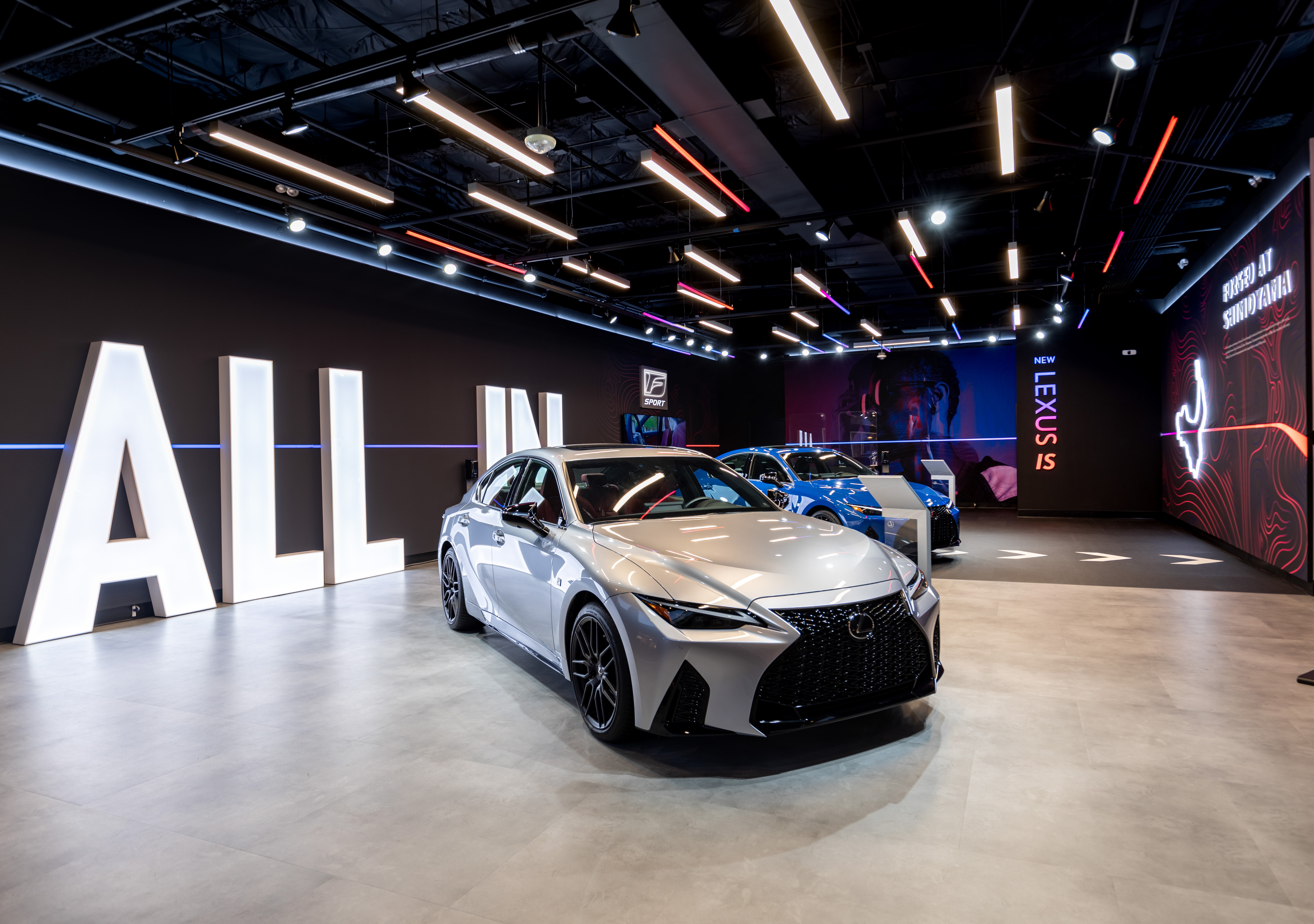 Inspired by the Lexus “ALL IN” campaign, directed to the Bold and Young personalities for the launch of the NEW IS 2021 Model, we took some of the most unique details from the vehicles, colors and movement to create a daring space full of self- discovery and story telling that embraces people taking their time to explore in a safe environment.